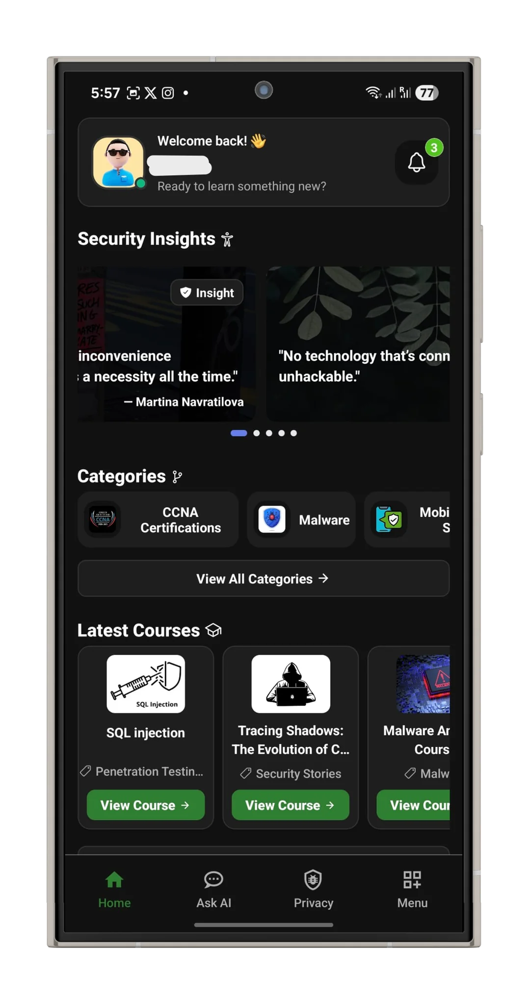 Absolutely. As a cybersecurity education app, we take privacy very seriously. We collect minimal data, only what's necessary for the app to function, and we never sell your information to third parties.
